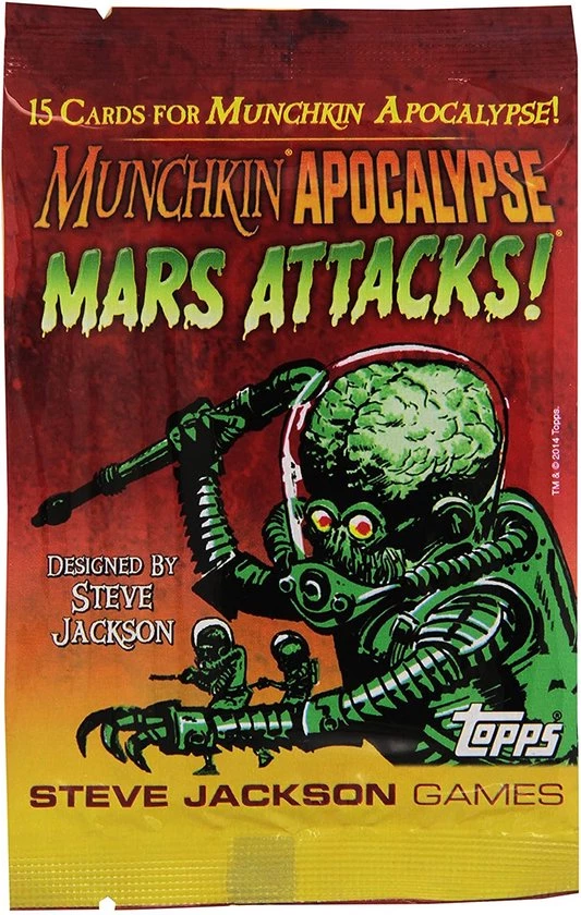 Mars Attacks! is een mini-expansie set voor het kaartspel Munchkin Apocalypse! Deze expansie bestaat uit 15 nieuwe kaarten en bevat artwork van de originele TCG serie Mars Attacks! uit 1962. Compatibel met alle Munchkin kaartspellen.