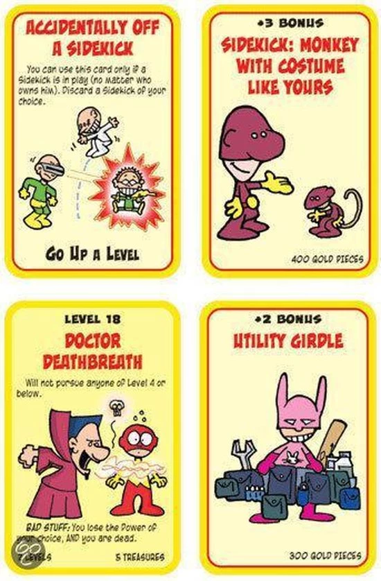 Vlieg door de stad.. verpletter de schurken… steek je teamgenoten in de rug en pak hun gadgets. Muchkin heeft al vele parodieen gemaakt – nu zijn de superhelden aan de beurt! Wees een mutant, een exotische,een mistieke of een techno. Hoe hoger je level hoe meer power. Strijd tegen monsters, vreemdelingen etc. en pak hun spullen. Dit spel is een stand alone maar kan ook gecombineerd worden met andere munchkin spellen.