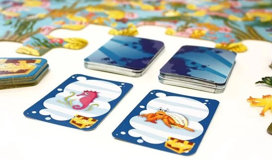 In het Coral Reef zijn er heel wat zeedieren. Door middel van dit Tactic spel maak je kennis met de verschillende dieren. Zoek de zeedieren die je ziet op de twee kaarten en wijs ze tegelijkertijd aan! Ben je sneller dan de andere spelers, dan word je beloond met een dierenspeelstuk!