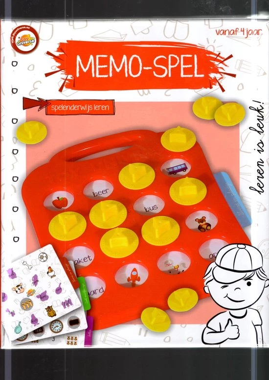 | Verpakkingsinhoud | 1, doos<br, />met, 1, memobord<br, />16, deksels<br, />10, dubbelzijdige, kaarten |