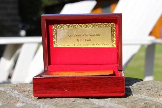 - Materiaal: Hout, Papier, Goudfolie